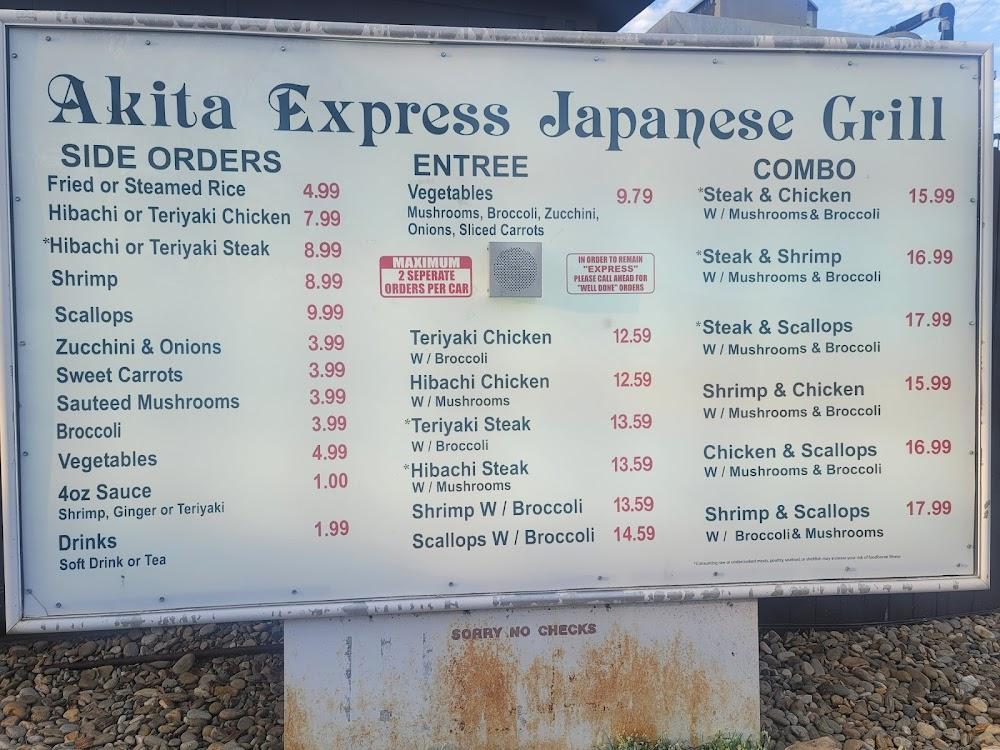 Welcome to Akita Express Japanese Grill, your go-to destination for authentic Japanese cuisine in Morristown, TN. Located conveniently at 3100 E Morris Blvd, we pride ourselves on offering delicious local specialties in a relaxed and trendy atmosphere. Whether you're in the mood for a quick lunch, a cozy dinner, or takeout on the go, our diverse menu features healthy options and vegetarian delights. Enjoy our accessible seating and facilities, perfect for families and groups alike. With catering to solo diners as well, Akita Express is here to satisfy every craving. Join us and experience the taste of Japan today!